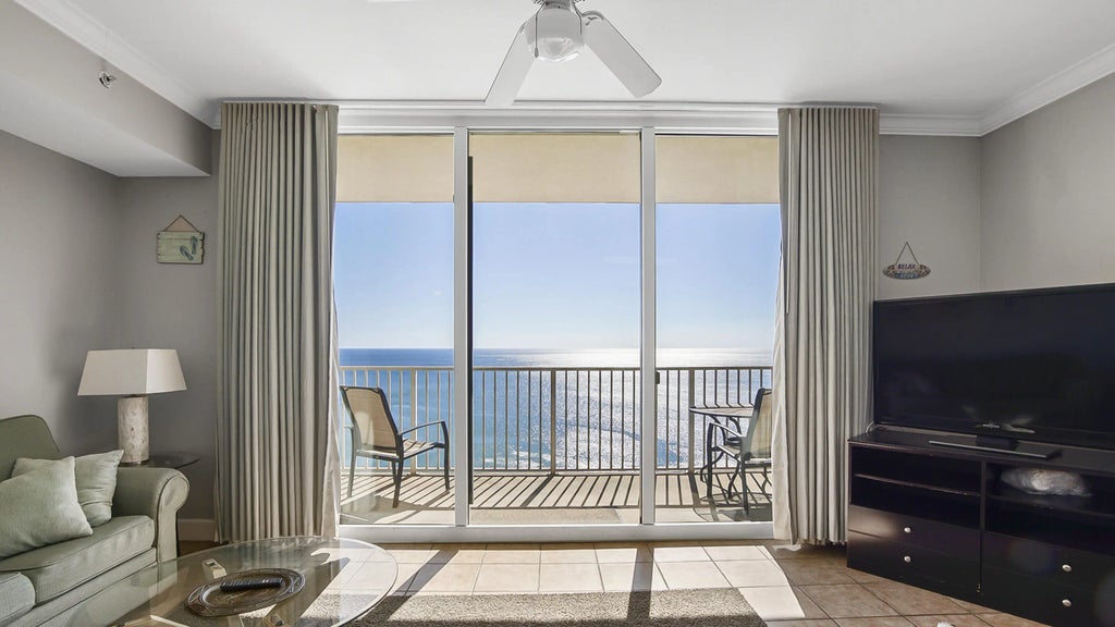 This beautifully furnished beachfront condo at the Tidewater Beach Resort offers luxurious coastal living. The 'M' plan features convenient bunk beds in the hallway, perfect for additional guests. Plus a sleeper sofa in the living room. Enjoy upscale finishes, including granite countertops in the kitchen, 9-foot ceilings, and tile flooring throughout the main living spaces.Resort Amenities Include:Two expansive Gulfside poolsState-of-the-art fitness centerTiki BarConference centerOn-site restaurant and loungeCovered parking garageTheater room24/7 full staff securitySituated on the desirable West end of Panama City Beach, this condo is only a short AA1/2 mile walk from Pier Park Shopping Center and just a short drive to the new Emerald Coast/Panama City Airpor