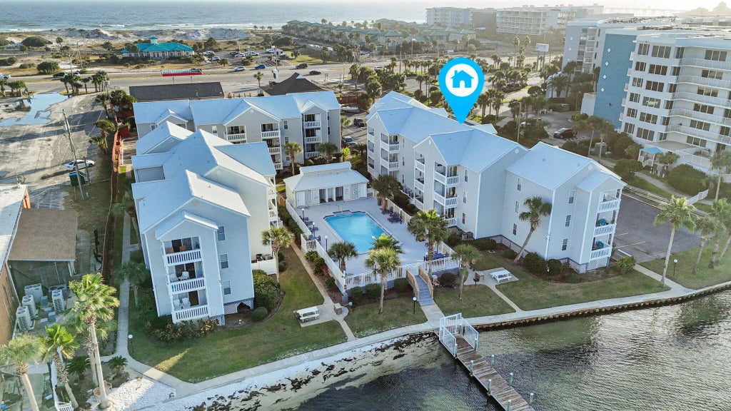 Experience the ultimate blend of relaxation and investment potential in this stunning, fully furnished 2-bedroom, 2-bathroom condo on Okaloosa Island. With 750 square feet of beautifully designed living space, this third-floor gem offers breathtaking, front-and-center views of Choctawhatchee Bay and sits just steps from the sugar-white sands and emerald waters of the Gulf of Mexico.Step inside to find luxurious wood grain tile planks flowing throughout, creating a warm, inviting atmosphere. The stylish decor continues with a custom made breakfast bar in the kitchen and thoughtfully chosen accents in the living room. From here, step out onto your private balcony and take in the sweeping, unobstructed views of the bay, with a bonus overlook of the sparkling pool below.This exclusive complex provides an array of amenities, including a waterfront pool, a private dock perfect for fishing and boating, a BBQ grill area, and a serene beach spot. With designated parking, visitor spaces, and easy access to the Okaloosa Boardwalk, Pier, and the famous Crab Island, you'll have everything you need right at your fingertips yet the complex remains tucked away from the main highway, giving you a peaceful, secluded feel.