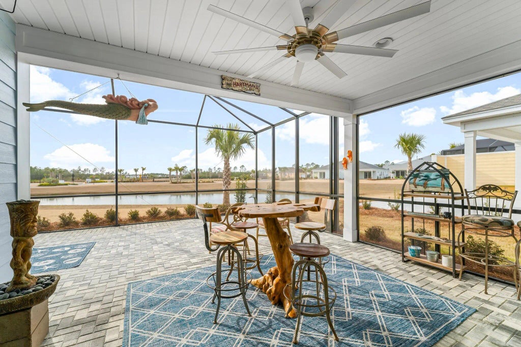 Discover your dream retreat at the exquisite Tortola Villa, Furnished (with exclusions) and complete with a luxurious spa that conveys overlooking a gorgeous pond view in the 55+ community of Latitude Margaritaville Watersound in Panama City Beach! This exceptional villa is unique, featuring not just two spacious bedroom suites, but also a convenient powder room and a versatile flex room, all within an expansive 1,743 sqft layout. Revel in the numerous custom upgrades that elevate this home beyond a typical new build, including stunning Luxury Vinyl Plank flooring throughout the common areas, bedrooms, and powder room, plus a stylish ocean floor epoxy finish in the garage with added shelving for convenience. Culinary enthusiasts will adore the chef's kitchen, outfitted with an upgradedappliance package, 42" cabinets with under cabinet lighting, elegant quartz countertops, and a wine/beverage coolerperfect for savoring your favorite libations while enjoying picturesque pond views. After a delightful meal, unwind on the extended pavered lanai, where you can indulge in the spa and witness breathtaking evening sunsets. Cozy up by the fireplace before retreating to the master suite, featuring a seamless shower designed for ultimate relaxation. With all this luxury at your fingertips, you're guaranteed the best night's sleep as you dream of tomorrow's adventures in Margaritaville. Whether it's soaking up live music every day, swimming in the resort-style Oasis pool, dining at Bar & Chill, or participating in countless fitness classes and events organized by the dedicated Lifestyle staff, Tortola Villa is your gateway to a vibrant and fulfilling lifestyle. Don't miss out on this extraordinary opportunityyour paradise awaits!