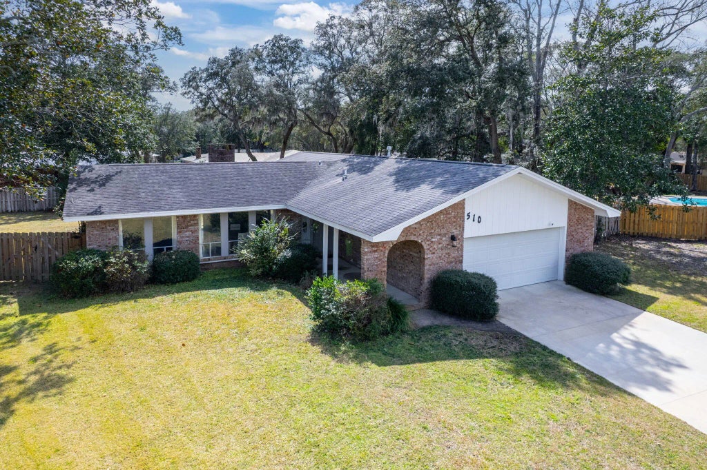 Back on the Market, no fault of the seller - Bring an offer! *New Stainless Steel fridge installed 8/12/25* Welcome to 510 Sioux Circle, a lovely home in Fort Walton Beach, FL, located in the family-friendly neighborhood of Overbrook. Centrally located to both Hurlburt Field and Eglin AFB, this is an ideal location for Active Duty and DOD personnel. Fort Walton Beach is rich in activities and scenery such as public parks and recreation, emerald water beaches on Okaloosa Island and nightlife downtown. With many shopping and dining options nearby, there's something for everyone. This home features a spacious living area with new LVP flooring installed in 2023 and a cozy brick surround wood-burning fireplace. The back sliding glass door is hurricane-rated for added safety. The open concept design allows for plenty of natural light, complemented by the many recent renovations throughout. The kitchen is a highlight with bright quartz countertops, a mix of stainless steel and white appliances, a modern tile backsplash, and a kitchen island with storage. The primary bedroom offers double closets, while the bathroom includes a double vanity and a large tile walk-in shower with an oversized rain showerhead and a handheld showerhead. Additional features of this home include a new HVAC system installed in 2024, a hot water heater installed in 2022, PEX plumbing, and hurricane shutters. A whole-home Generac generator, serviced yearly with a battery replaced in 2023, ensures peace of mind. The walls and ceilings have been freshly painted, and the driveway was repaved in 2022.