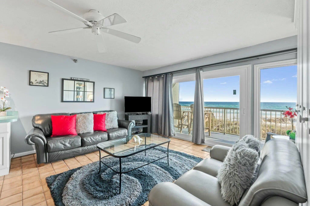 Welcome to this stunning three-story condo on the Gulf of America! Step outside to your own private, uncrowded beach.This spacious second-floor unit features a king bedroom, a full bath, a hallway alcove with bunk beds, and a Murphy bed in the living room. Enjoy a private balcony with breathtaking Gulf views.Relax in the beachfront heated pool and whirlpool, or walk onto one of the world's most beautiful beaches.