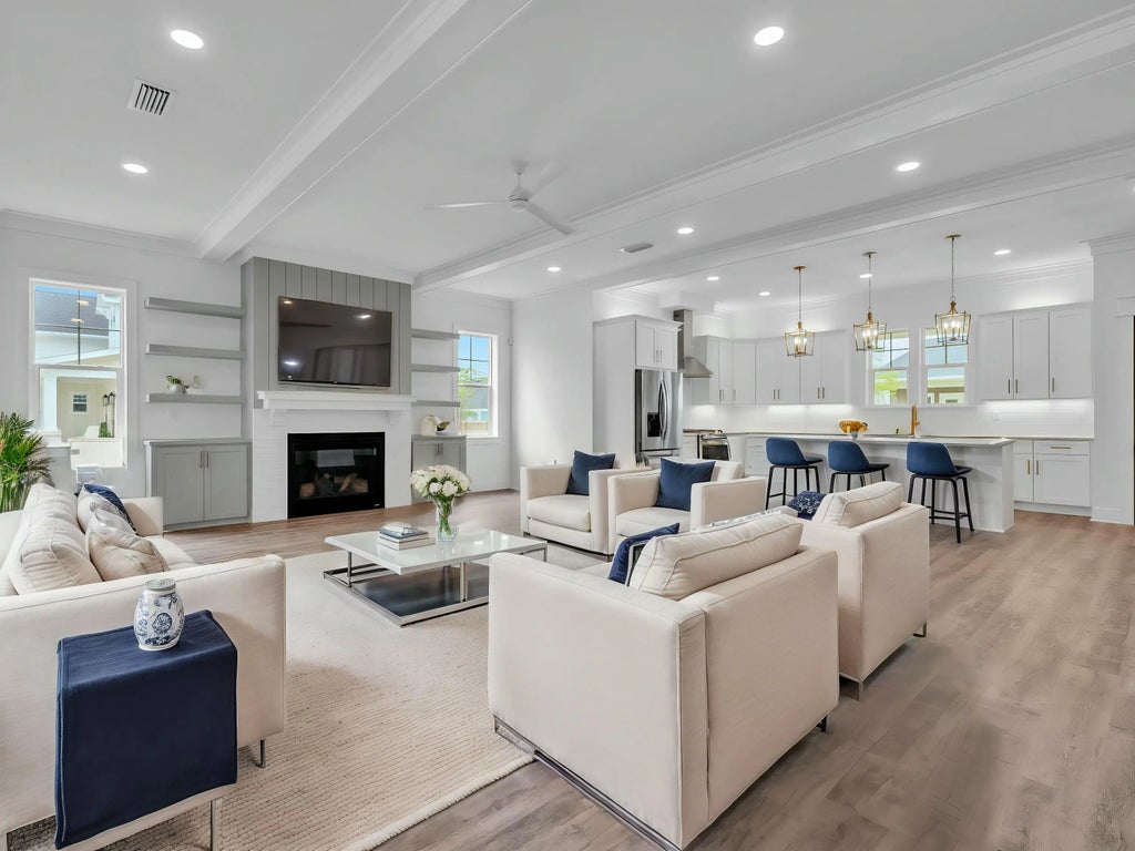 MOVE IN READY! Welcome to this exquisite 4-bedroom, 2.5-bathroom home with an office featuring custom built-ins and a versatile flex space upstairs, located in the highly sought-after Deer Moss Creek community. From the moment you arrive, you are greeted by a charming wraparound front porch, perfect for relaxing or enjoying your morning coffee. The large, oversized rear porch offers ample space for outdoor entertaining and family gatherings.Step inside to a spacious living area that exudes warmth and comfort. The gas fireplace, framed by built-ins, creates a cozy focal point, while the expansive island in the kitchen invites gatherings and meal prep alike. Adjacent to the kitchen, a bright dining nook offers a perfect space for casual mealsThe open layout ensures effortless flow between room creating an ideal setting for both daily living and entertaining. Upstairs, you'll find the master bedroom, offering a private retreat, and three additional generously sized bedrooms, providing plenty of space for family and guests. The upstairs flex space provides endless possibilities, whether you need a playroom, media room, or extra office space. The home's quality craftsmanship extends to the oversized two-car garage, where the builder has applied epoxy flooring and provided ample space for a future built-in workbench, catering to hobbyists or DIY enthusiasts. Deer Moss Creek is a community like no other, offering exceptional amenities, including walking trails, sidewalks, a clubhouse, a basketball court, and a playground. Enjoy sunny days at the pool area, complete with a gazebo and outdoor kitchen, perfect for cookouts and gatherings with family and friends. With curb and gutter throughout the neighborhood, every detail has been thoughtfully designed to enhance your lifestyle. Don't miss the opportunity to call this beautiful home yours in one of the area's most desirable communities.