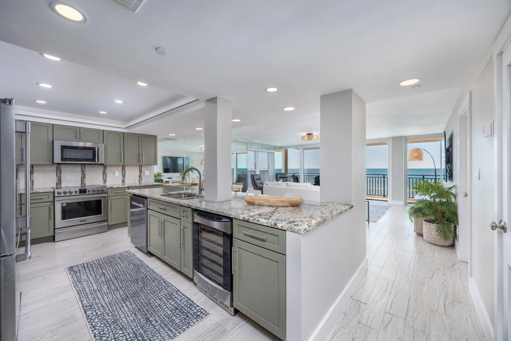 Discover luxury coastal living in this completely customized 3-bedroom, 3-bathroom end-unit condo on the exclusive 7th floor of The Breakers on Okaloosa Island. Offering 1,748 sq. ft. of thoughtfully designed space, this stunning residence provides direct, unobstructed Gulf views while being peacefully removed from pool noise. With secured elevator access and no short-term rentals on this floor, enjoy the privacy and tranquility of this premier top-floor corner unit. Unmatched Gulf front Views & Living Spaces Expansive living & dining areas designed to maximize natural light, featuring end-unit windows and floor-to-ceiling sliders leading to a private balcony with panoramic Gulf views.Extended balcony (2nd largest in the complex) with a private exterior storage unit--(MORE)perfect for beach gear. Media console pre-wired to extend into the master suite and bathroom. Gourmet Kitchen - A Chef's Dream Open-concept layout for a seamless flow and enhanced beach views. High-end stainless steel appliances, soft-close cabinetry, a dedicated wine refrigerator & wine rack. Granite countertops, under-cabinet mood lighting, and cove lighting above cabinetry. Oversized 9-ft island & hall pantry for extra storage. Master Suite - A Luxurious Waterfront Retreat Direct Gulf-front views with private balcony access. His & hers closets for ample storage. Spa-like en-suite bath featuring a custom walk-in tile shower with a rain head, hand-held shower, and four body jets. Double vanity with backlit mirror, makeup mirror, under-cabinet lighting, and built-in speaker system. Two spacious guest bedrooms, each with its own full bathroom. Guest Bath 1: 71" soaker tub with a beautiful backlit tile accent wall. Guest Bath 2: Custom tiled shower with rock sink bowl and a shelf for bath essentials. Plantation shutters & mounted flat-screen TVs in both guest rooms. Additional High-End Features Full-size washer & dryer (rare for condos). Oversized water heater for continuous comfort. Plumbed for a central vacuum system for added convenience. This exceptional turnkey property offers the perfect blend of elegance, comfort, and modern convenience. With its high-end finishes, unmatched Gulf views, and exclusive 7th-floor location, this is truly a rare opportunity in today's market. Don't miss outschedule your private tour today!