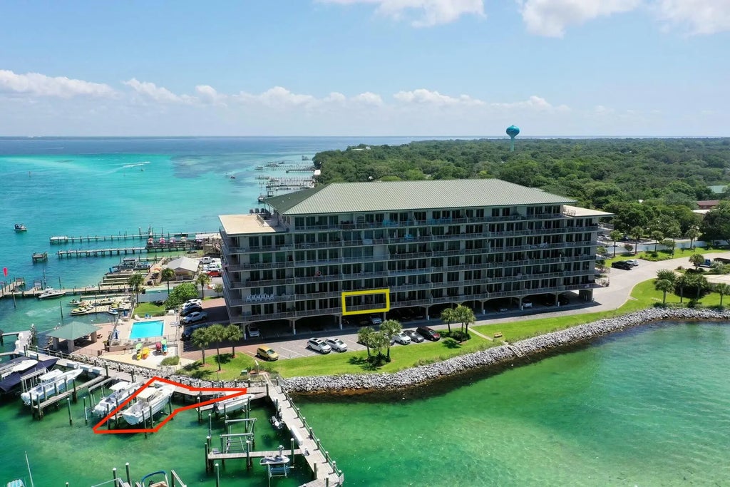 The Owner is motivated to sell! Price reduced to $899,000 with a $10,000 buyer incentive at closing, this 3BR/3BA waterfront residence is a boater's dream--complete with a 30' deeded boat slip with a 16k lb lift and separate jet ski lift. Located in Destin's exclusive Sides Moreno Point West, enjoy 180 views of Crab Island, East Pass, and the Gulf from your 240 sq ft balcony--large enough for sectional seating, al fresco dining, and sunbathing. The freshly painted 2,196 sq ft interior features 10' ceilings, crown molding, and an open layout ideal for entertaining.Read on to discover how this rare offering blends effortless boating with coastal luxury.Crafted for those drawn to the water, this light-filled condo provides direct access to Destin Harbor, Choctawhatchee Bay, and the Gulf. Fish from the dock, paddle into tranquil waters, or head offshoreit's all at your doorstep. Inside, expansive countertops, a breakfast bar, and wet bar make entertaining easy, while the primary suite features balcony access, a jetted tub, separate shower, dual vanities, and a large walk-in closet. Lovingly maintained by its original owner as a primary residence since 2004, the home is a blank canvas ready to reflect your personal style. Sides Moreno Point West is a rental-restricted, low-density community of just 44 unitsoffering peace, quiet, and security with only one tenant allowed per every 30 days. The building has successfully completed its Structural Integrity Reserve Study (SIRS), is well-managed by a proactive Board, and maintains ample reserves. Notably, the Board has reduced insurance premiums by approximately $100,000 over the past two years. Residents enjoy gated entry, covered parking, paddleboard/kayak storage, private storage unit, BBQ area, and a beautifully landscaped waterfront pool. This is Destin living at its most refined.