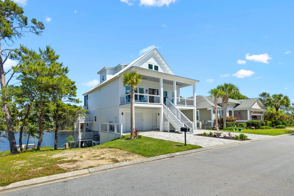 Stunning Custom Lakefront Home on Lake Powell! Experience the best of coastal living in this exquisite 4-bedroom, 3.5-bath custom-built home situated on the shores of Lake Powell--the largest coastal dune lake in North America that allows boating! Designed for both luxury and functionality, this spacious home includes an elevator, a dock and thoughtful features on every level. The second floor serves as the main living space, boasting a gourmet kitchen, gas fireplace, and a serene master suite. Accordion sliding glass doors in both the living room and master bedroom open to a screened-in balcony--perfect for enjoying peaceful lake views. The third floor features two additional bedrooms, a full bathroom, and a large storage area. The first floor includes a family room, a bedroom, a fullhandicapped accessible bath, and a space pre-plumbed for a future kitchen ideal for a guest suite or in-law quarters. Outdoors, enjoy a tranquil backyard oasis with a firepit and koi pond. The private dock is constructed with marine-grade wood and Shorestep decking. Ready for all your lake adventures. Additional high-end features include a mahogany front door, tankless water heater with instant hot water, impact-rated windows and doors, extra insulation, Trex decking, and garage doors tall enough to accommodate large SUVs. This home offers quality, comfort, and the rare opportunity to live on a boat-friendly coastal dune lake don't miss it!