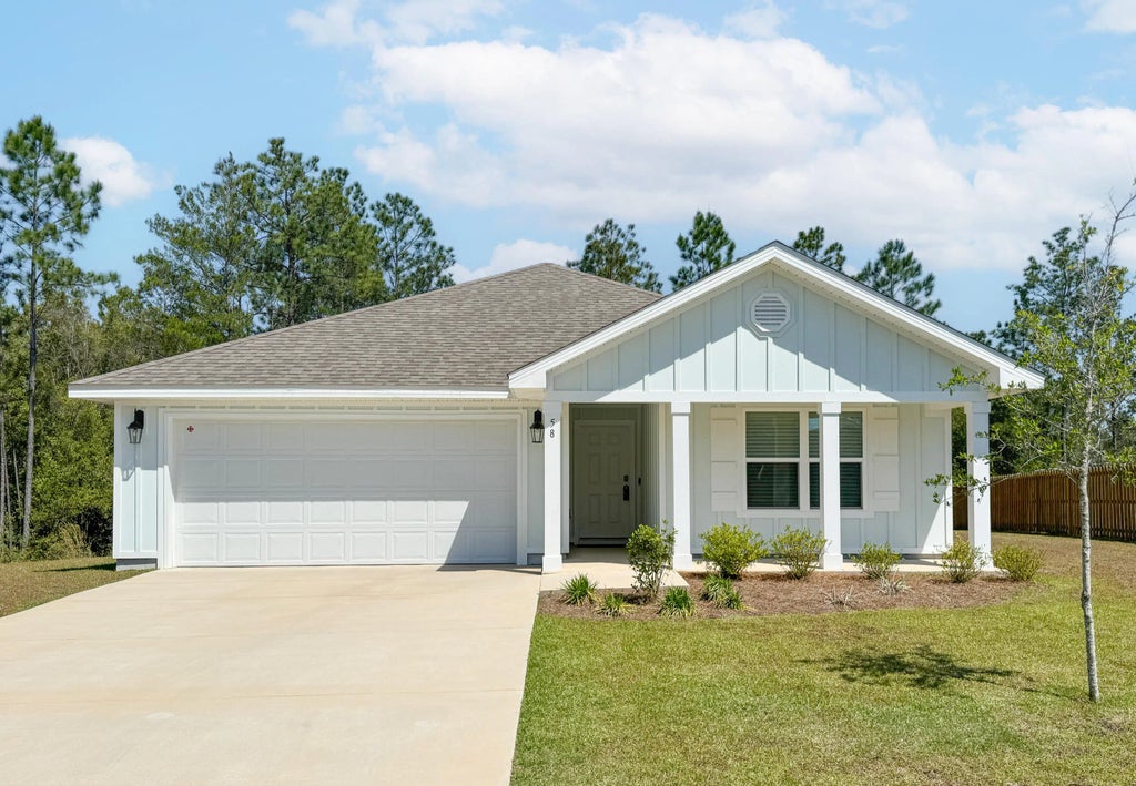 Don't wait to build--this beautifully designed 4-bedroom, 2-bathroom home offers 2,062 sq. ft. of comfortable, modern living in one of Freeport's most sought-after communities. With a 4.99% FHA Assumable Loan option available to qualified buyers, this property is an opportunity you don't want to miss! Step inside to a bright and inviting open-concept floor plan, featuring luxury vinyl plank flooring in the main living areas and plush carpet in the bedrooms. The gourmet kitchen is a true showpiece with granite countertops, a large island, white shaker-style cabinetry, a walk-in pantry, and upgraded stainless steel appliances. The kitchen flows effortlessly into the spacious great room and dining area--perfect for entertaining or relaxing with family. The private primary suite is tucked awayat the back of the home and offers two walk-in closets plus a luxurious en suite bath with a double-sink vanity and walk-in shower. Three additional bedrooms, a full bath, and a convenient laundry room are located at the front, completing a well-designed split floor plan ideal for families, guests, or a home office. Enjoy outdoor living on the covered back porch overlooking the private backyard, your personal retreat for relaxing mornings, cozy evenings, or weekend gatherings. This home is located in a quiet, sidewalk-lined community perfect for evening strolls. With quick access to Highway 20, Highway 331, and I-10, you're only 25-30 minutes to the sugar-white beaches of South Walton and just 45 minutes to Panama City Beach. Schools, shopping, and local churches are only minutes away. Kitchen appliances & window blinds included. 4.99% FHA Assumable Loan option (approx. balance of $355,000)