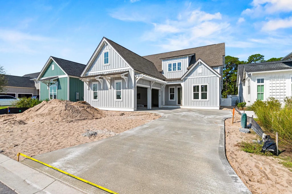 Step into refined coastal luxury with the Suffolk II, an architectural masterpiece by Romair Homes, nestled within the lakeside Powell Landing East enclave of the Watersound Origins community. Slated for completion end of Oct 2025, this 3,297-square-foot residence offers an unparalleled blend of sophistication, comfort, and seamless indoor-outdoor living. Designed with impeccable craftsmanship, this 4-bedroom, 4.5-bathroom home features a bonus room and a 2-car side-load garage, ensuring both functionality without sacrificing curb appeal. The grand living area is anchored by a striking 60'' linear fireplace, while 16' sliding glass doors open effortlessly to the expansive covered porch, blurring the lines between interior luxury and outdoor serenity.