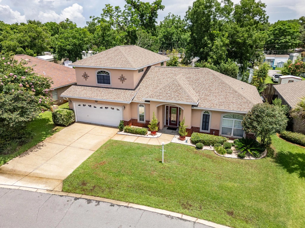 This home is nestled in a beautiful neighborhood between Eglin AFB and Hurlburt Field. Save time and money being so close to everything! This spacious home boasts over 2,700 sq ft! PLUS, no worries about the roof (2021), pool pump (2023) and 2 HVAC systems (2023)! This contemporary home features a first-floor primary bedroom with convenient access to the laundry room. Downstairs, you'll also appreciate the blue tooth, surround sound speaker system, engineered hardwood floors and custom wine bar. Don't miss the sleek gourmet kitchen with breakfast bar, pantry, custom maple cabinets, black pearl granite and stainless backsplash and appliances. Entertaining will be a breeze in the massive great room off the kitchen. Step outside to your private oasis! >You'll enjoy splashing around in your low maintenance, salt system POOL! Lounge around on the deck and no worries about splinters with this composite decking. There's also a natural gas connection for grilling and artificial turf, so no mowing needed out back! Upstairs has so many possibilities - make it 2 bedrooms and a bathroom or a game room or gym or office. You'll also find a convenient walk-in attic storage area upstairs for your out of season items. Quality construction details like impact glass windows, tankless water heater, three-coat stucco claddings and 2X6 framing. Hospital is less than 1 mile away, shopping close by and A+ Liza Jackson is across from the neighborhood. Underground utilities are a bonus too! Don't delay and call your Realtor today!