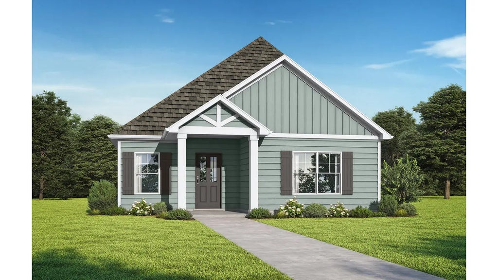 VIEW of Spring-Fed lake from your front porch! Welcome home to the Provence! Enjoy all of your living space and bedrooms on one convenient level. Whether you are entertaining or relaxing for the evening, you'll love the gorgeous upgrades and open floor plan. With included options such as quartz countertops in all areas, soft close cabinets, large kitchen island, tray ceilings, and so much more, you have to see home today! Beautiful exterior features include Colorplus Hardiboard siding and covered porches in the front and exterior of your home. Your primary bedroom is a dream with tray ceilings, paddle fan, a huge walk-in closet and showcases dual vanities and a spacious shower. You'll LOVE the coffered ceiling in the dining room which adds a luxurious feel to your entire home.Options and upgrades vary. Photos are of similar.