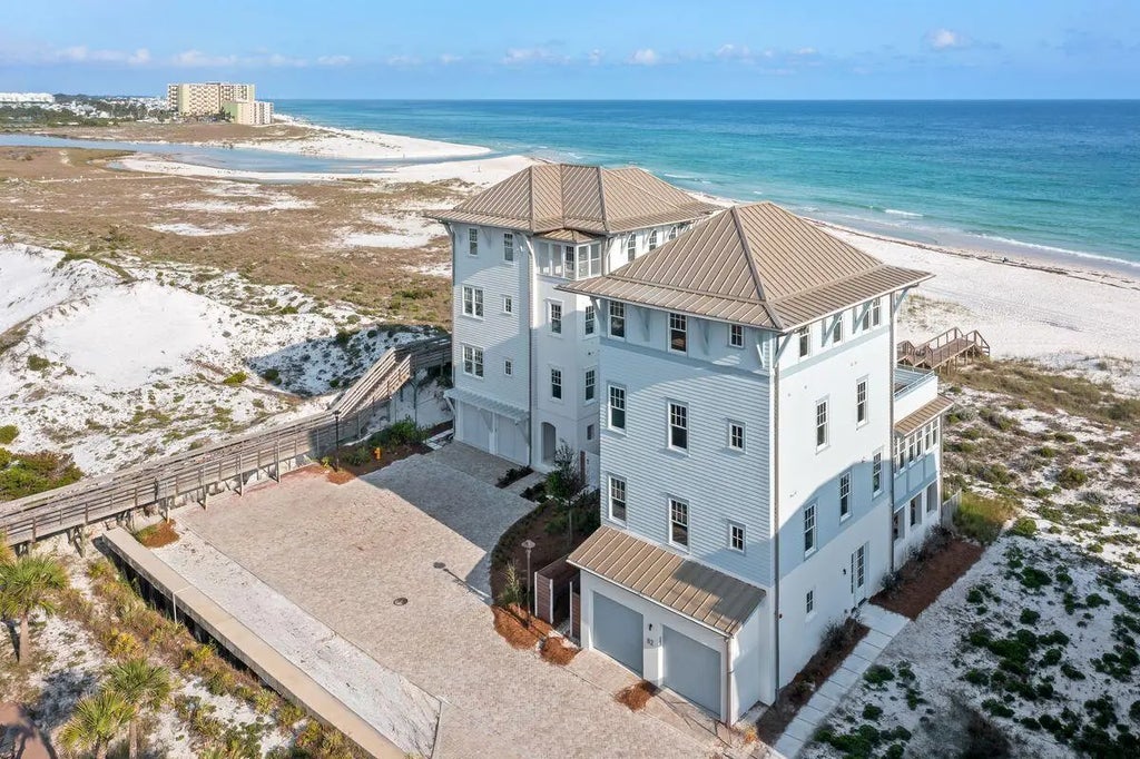 Perched on one of the widest homesites in the exclusive community of Lupin Beach, Lot 19 offers 87 feet of uninterrupted Gulf frontage and 3,667 square feet of refined interior living. Designed by Historical Concepts and brought to life by Alys Beach Construction, this four-bedroom plus flex room residence captures the essence of coastal sophistication across four thoughtfully designed levels. Inside, curated finishes reflect a balance of softness and structure--wide-plank Madeline hardwood flooring, handcrafted Zellige tile, and natural quartzite countertops anchor the palette, while aged brass lighting and satin brass fixtures lend a timeless warmth.The kitchen features white oak cabinetry, a 36" Wolf gas range, paneled Sub-Zero refrigeration, and an expansive island finished in Special Walnut stain. An elevator connects each floor, including the third level's lounge and Gulf-facing terraceperfect for sunset cocktails or morning coffee with the sound of waves. Outside, a private plunge pool and summer kitchen invite relaxed al fresco living. Just a few yards away, Lake PowellFlorida's largest coastal dune lakeoffers tranquil opportunities for paddle-boarding, kayaking, and fishing in a protected, scenic setting.