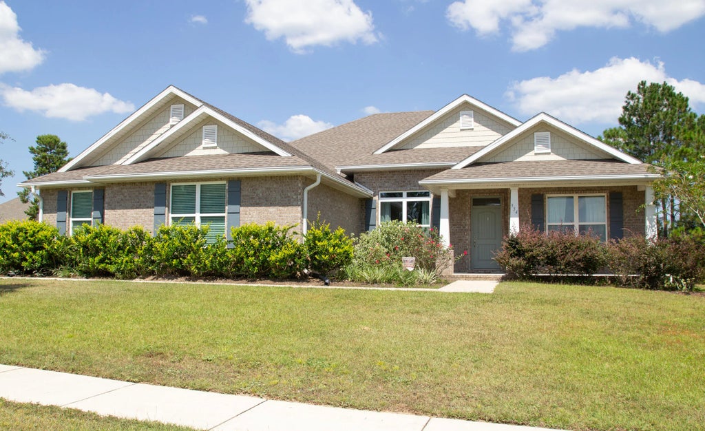 Welcome to 334 Tournament Lane, an exceptional home located in the prestigious, gated golf course community of Windswept Estates. This beautifully designed 3-bedroom, 3-bathroom home offers a flexible floor plan featuring a formal dining area, a versatile bonus/flex room, and a spacious oversized 30x30 garage, perfect for storing all your Florida beach toys, golf cart, or workshop essentials. The expanded driveway provides ample parking for guests. Set on a generous 0.79-acre lot backing up to the 8th fairway, this property delivers a rare combination of privacy and peaceful golf course views. Inside, you'll find elegant finishes including granite countertops, stainless steel appliances, and engineered vinyl plank flooring throughout the main living areasThe open-concept layout seamlessly connects the living, kitchen, and dining spacesideal for entertaining or relaxed Florida living. The private owner's suite serves as a true retreat, featuring a sitting area, walk-in closet, and a spa-inspired ensuite with double vanities and a walk-in shower. Enjoy the outdoors year-round from the covered back patio, perfect for gatherings or quiet evenings. Located just 25 minutes from the white-sand beaches of the Emerald Coast, Windswept Estates offers resort-style amenities including a community pool, clubhouse, tennis courts, basketball court, playground, and an 18-hole championship golf course.