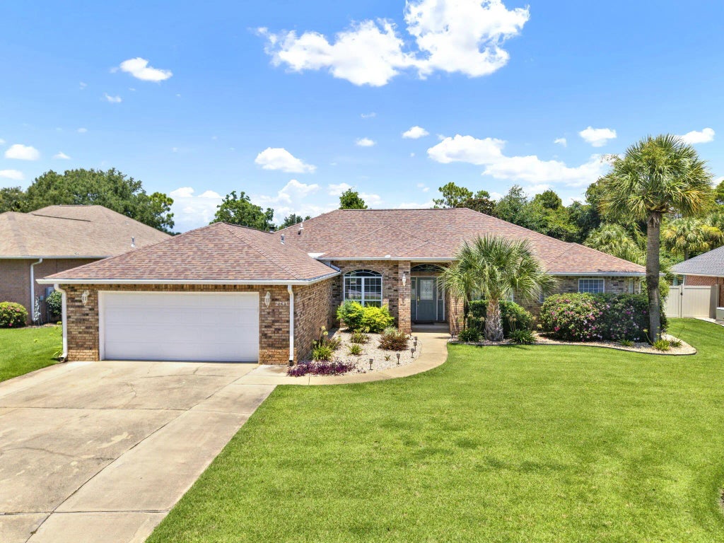 Welcome to your dream home in the highly sought-after Creeks Edge neighborhood of Navarre! This stunning 4-bedroom, 3-bathroom, 2,905 square foot residence combines luxury, comfort, and functionality with breathtaking views of the Hidden Creek Golf Course.Step inside to find a spacious open-concept living area with soaring ceilings that create a bright, airy feel throughout. The beautifully updated kitchen is a chef's delight, featuring granite countertops, stainless steel appliances, under- and over-cabinet lighting, and an abundance of cabinets and counter space--perfect for entertaining or everyday living.The oversized master suite is a private retreat, complete with a trey ceiling and a separate office or sitting room overlooking the pool.... Enjoy year-round comfort with an independent HVAC system just for the master suite. The luxurious ensuite bath offers two large walk-in closets, a double vanity, a whirlpool tub, separate shower, and a private water closet. A cozy den provides a secondary living space with gorgeous views of the pool and golf course, highlighted by a wood burning fireplace, tray ceiling, and granite-topped cabinets, an ideal spot to unwind or host guests. Step outside to your enclosed patio and pool area, featuring a heated pool perfect for relaxing or entertaining while enjoying serene golf course views. The beautifully maintained yard is supported by a well-fed sprinkler system and includes a convenient storage building. Additional features include all-brick construction, a centralized vacuum system, a 2022 HVAC system, and a 2018 roof for peace of mind. Don't miss your opportunity to own this exceptional home in one of Navarre's most desirable communities. Schedule your private showing today.