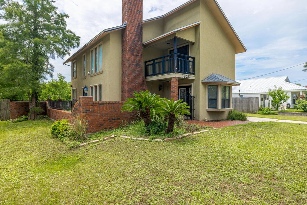 Nestled on a spacious 0.25-acre lot on the desirable east end of Panama City Beach, this unique home is full of character and coastal charm. The large lot offers plenty of room for a private pool! With 3 bedrooms, 3 full bathrooms, and two inviting living areas (one on each floor) there's space for everyone to spread out and enjoy. The oversized master suite offers a private retreat, complete with its own balcony, a large walk-in closet (with laundry hookup!), and a gorgeous en suite bathroom featuring a sleek, standalone soaking tub. Downstairs, you'll find a cozy living room centered around a wood-burning fireplace and a versatile bonus room that's currently used as a 4th bedroom, but perfect for guests, a home office, or creative space. Step outside to a private courtyard (SEE ADD REM.and patio ideal for entertaining, plus a powered workshop for hobbies or extra storage. Located just minutes from the beach, Navy base, shopping, dining, and entertainment, this home offers a rare combination of space, charm, and convenience in one of the area's most sought-after locations.