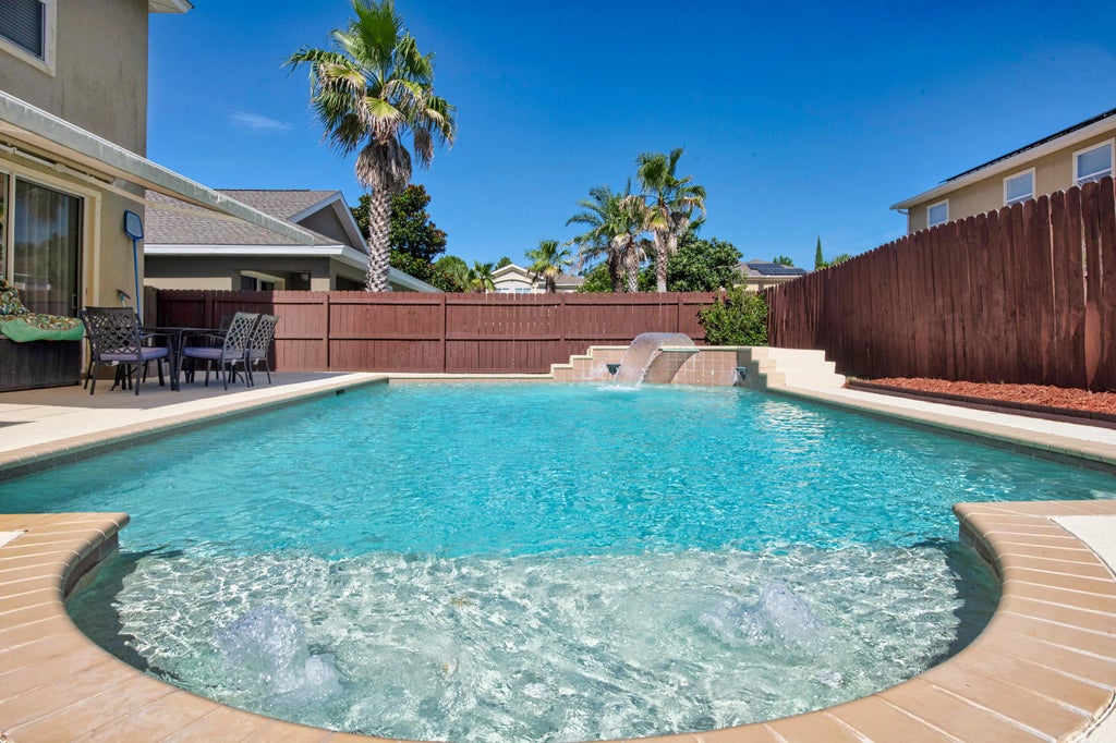 Back on Market to no fault of seller! Welcome to your Mediterranean dream home--where grand meets cozy and convenience meets style!Tucked away in the beautiful community of Solimar, this spacious 5-bedroom, 2.5-bathroom home offers the perfect blend of elegance and everyday comfort. Just minutes from Hurlburt Field, yet nestled in a quiet and private corner of Mary Esther, you'll feel worlds away without sacrificing location.Step inside to soaring 20-foot ceilings, freshly painted Milano cabinets, and stunning built-in bookcases that add charm and functionality to the airy living room. The large dining area is ideal for entertaining and includes a sleek butler's cabinet with wine fridge for extra storage and serving space.On the main level, the owner's suite is your own private retreat, complete with two walk-in custom closets, a soaking tub, and an oversized walk-in shower that'll make every day feel like spa day. Upstairs, you'll find four more spacious bedrooms, perfect for family, guests, or a home office or two. Outside, your gunite pool with water feature brings the vacation vibes home, just add sunscreen and your favorite float. (Buyer to verify any information that is important to them).