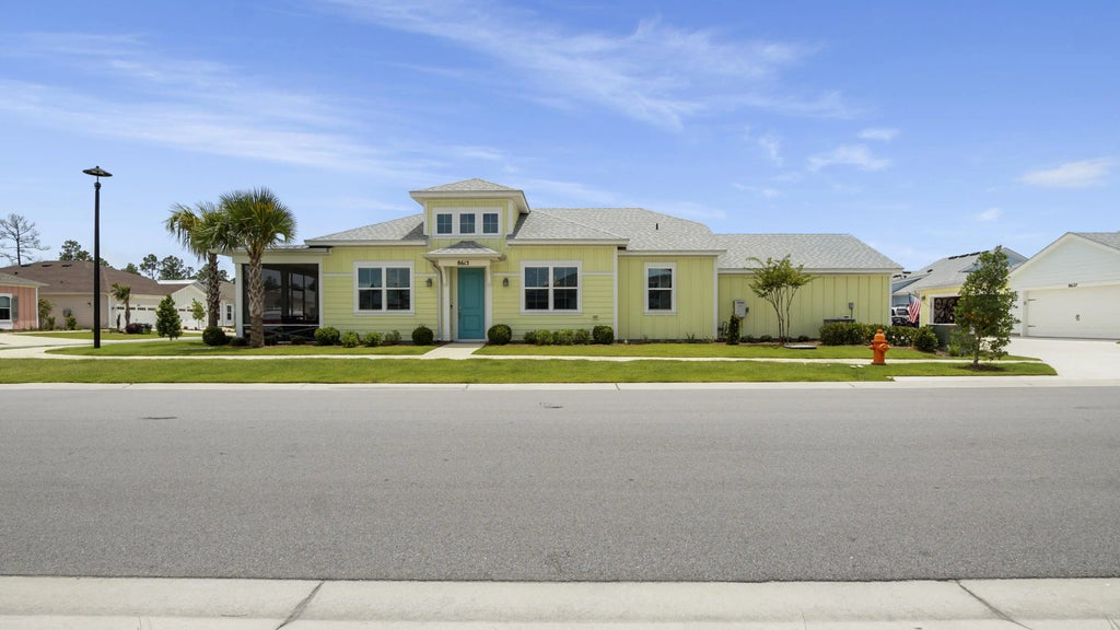 Welcome to this like-new Aloha floorplan located in Latitude Margaritaville, a gated 55+ community offering exceptional amenities and an active coastal lifestyle. This immaculate residence sits on a premium corner lot and features 2 bedrooms and 2 bathrooms, plus an additional flex-space perfect for an office, hobby room, or den. With over $75,000 in upgrades, this home showcases luxury vinyl plank flooring and recessed lighting throughout for a modern and cohesive feel. The kitchen is a chef's delight, featuring a spacious island, stainless steel appliances, a tiled backsplash, pantry, and beautiful lighted glass-front cabinetry with soft close doors. The bathrooms are equally impressive, with quartz countertops and showers that are tiledall the way up to the ceiling for a seamless, upscale look. Enjoy outdoor living year-round on the enclosed patio. The two-car garage is finished with epoxy flooring and includes a 20 amp outlet, keeping your car protected from the elements and your golf cart fully charged. Located within a vibrant community offering pools, fitness centers, restaurants, entertainment, and tennis or pickleball, this move-in ready home is perfect for enjoying everything Latitude Margaritaville has to offer.