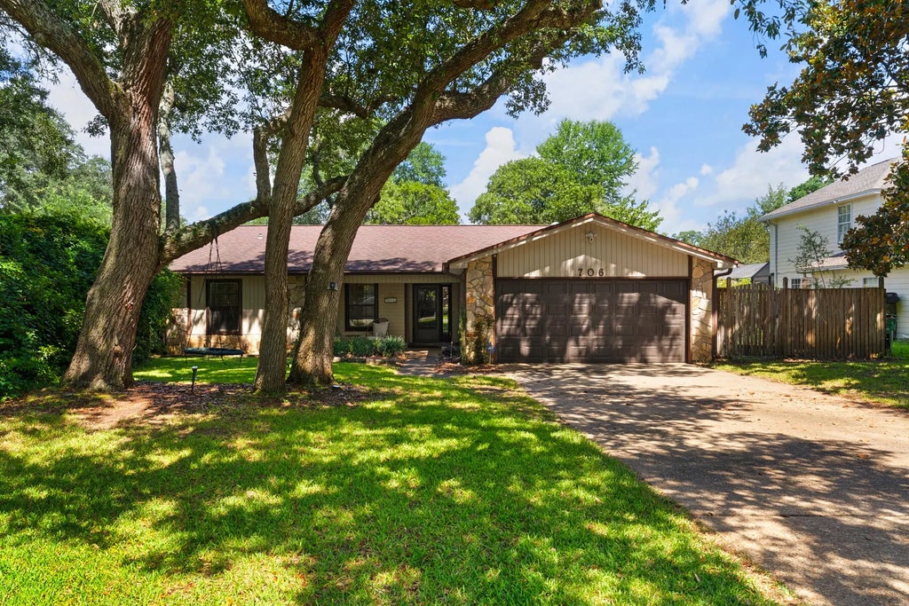 Location, convenience and ease of living! Bluewater Bay has it all. If a neighborhood that promotes the Florida lifestyle is what you are hoping to find - this could be ''The One''. Located on a beautiful street with other well maintained homes - 706 Providence Way offers great living spaces, nice-sized bedrooms, an updated kitchen, huge backyard...and it's all on a beautiful shaded lot. The oversized living area and a 200 sqft heated and cooled Florida room will accommodate your family as will the big back yard. Let's don't forget to mention the expanded patio for grilling, the storage shed in the back, additional storage cabinets in the garage and an automated sprinkler system! Items of note: Roof 2012 (seller willing to replace with acceptable offer), HVAC 2024, Water Heater 2020.