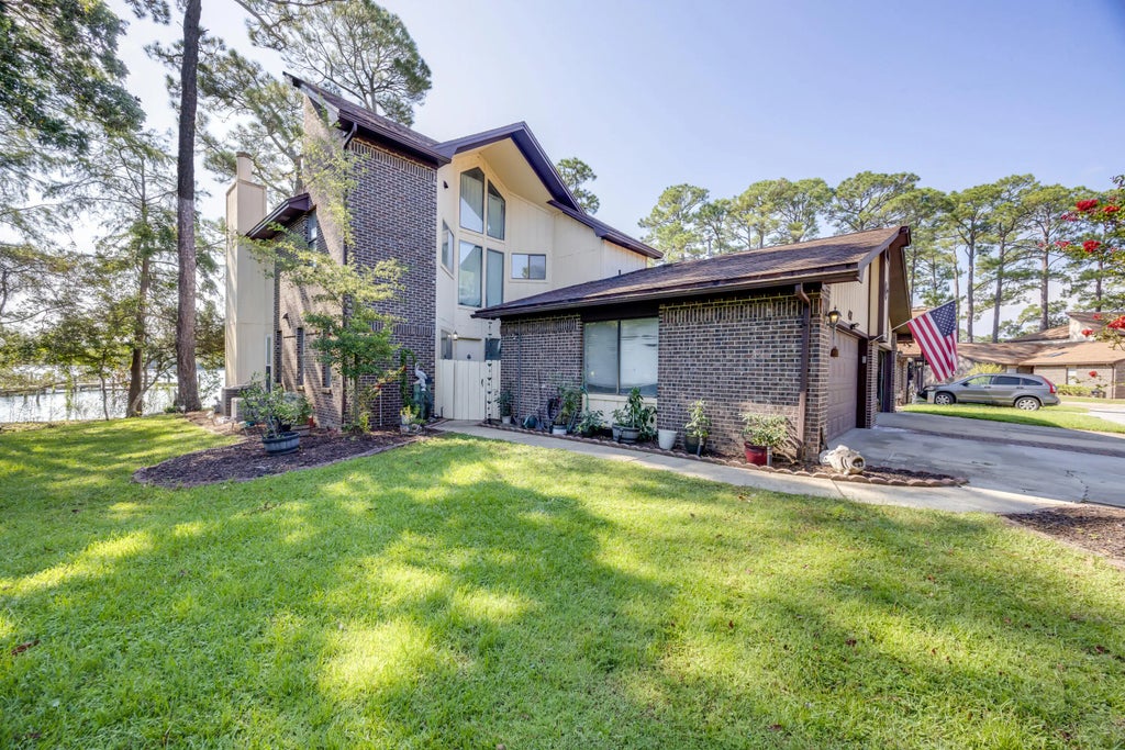 BEAUTIFUL WATERFRONT HOME WITH DOCK! A fishing and boating paradise on the water in the beautiful Hidden Cove community right next to Eglin Air Force Base. This home boast three bedrooms and three bathrooms with two bonus rooms, a huge storage area upstairs and a screened in porch that leads to your deck and private dock. Waterviews from multiple rooms and new windows that make it picture perfect. You have a full bedroom and bath downstairs for privacy with an additional master ensuite upstairs. This home blends peaceful bayou views with gorgeous sunset experiences. Tile and wood flooring, magic gas fireplace, central cooling, and a relaxing paradise on Tom's Bayou in Valparaiso. It's the perfect choice for those seeking a relaxed, waterfront lifestyle in Hidden Cove.Three bedrooms