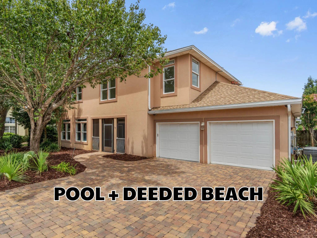 Welcome to 60 Sagris Cove in Avalon Beach Estates, a sought-after Gulf-front community with 500' of private gated beach access, seasonally heated pool, tennis, and pickleball courts. Never rented, this custom-built home with almost 2900 square feet boasts 3 bedrooms PLUS 2 oversized flex rooms -- one upstairs and one downstairs, ideal for guests or multi-use space. Features include transom windows, crown molding, chef's kitchen, whole-home generator, spacious primary ensuite. Many recent updates for 2025: BRAND NEW paint, LVP floors, water heater, and refrigerator. Roof (2022), *two* HVAC units (2016), paid-off solar panels. Screened front and back porch, privacy-fenced yard on a cul-de-sac in Flood Zone X. STR allowed. No thru traffic to 98. Your blank canvas on the beach awaits!