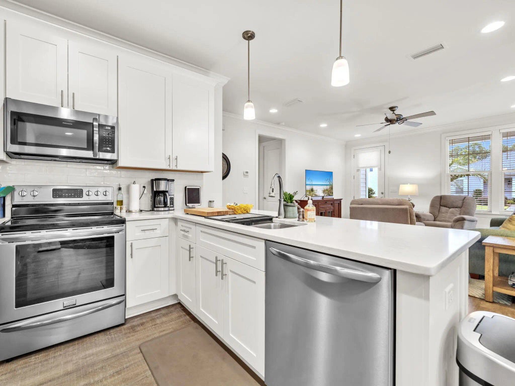 This beautifully designed Ashley plan located in Church Street Village is a single-story home featuring 2 bedrooms, 2 baths, a versatile office, and a 1-car garage. Perfect for anyone downsizing, relocating, or seeking a low-maintenance coastal retreat, the floorplan combines modern comfort with elegant finishes. The office is a flexible bonus room, large enough to function as a guest space with a daybed if needed. The spacious kitchen showcases quartz countertops, wood cabinetry, stainless steel appliances, and a large island, making it ideal for both entertaining and everyday living.Throughout the home, you'll find LV flooring, porcelain tile in wet areas, 9' ceilings, 8' doors, and recessed lighting. The master suite includes a walk-in closet, dual vanities, and a frameless tiled shower for a spa-like experience. Church Street Village is a community with landscaped grounds, sidewalks, a pool, fitness center, clubhouse, and dog park, with Phase III featuring larger lots and expanded amenities. Located just minutes from Highway 98 and Scenic 30A, the neighborhood offers quick access to the white-sand beaches of the Emerald Coast, top-rated schools, state parks, dining, and shopping. Whether enjoying the vibrant 30A corridor, exploring coastal dune lakes, or relaxing in the community pool, this home delivers bar-none quality and one of the best values in Santa Rosa Beach.