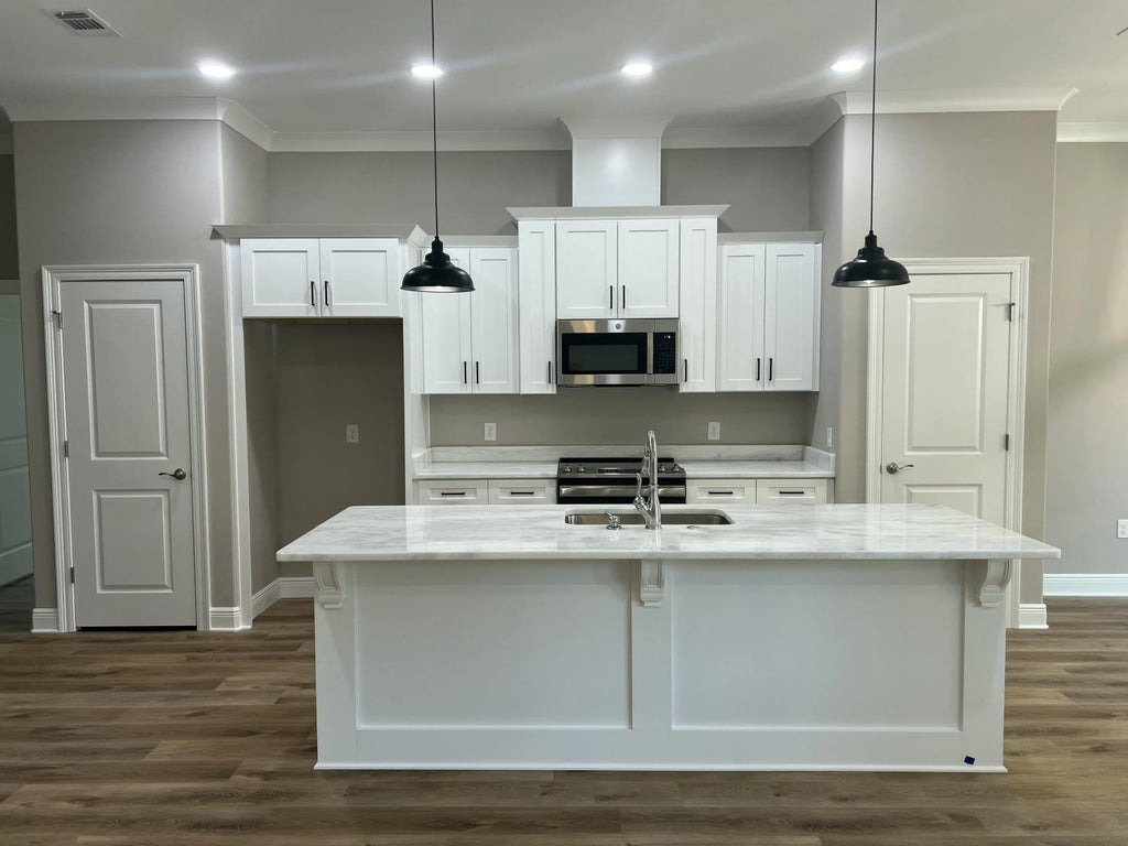 Tucked amongst a natural buffer of trees your New Craftsman Built home awaits .Nestled at the end of 3 other new builds~This luxurious 3 bed/2 bath floor plan with a 2 Car garage will be ready for an late fall move in ~Great Central Location with easy access to~Navarre Beach,Navarre Waterfront Park and Hwy 98 to Hurlburt Field AFB.This Stunning Robbins Builders Custom Home offers trend setting Features~Greeted by a walk in foyer sweeping through to your open floor plan~Large kitchen enjoying Shaker cabinets with crown molding, beautiful quartz counter tops~Under mount sink~S/S appliances ~Two pantries ~ Center Island with sleek top breakfast bar & open flow to the dining area, large family room & separate office/flex room all enhanced with gorgeous vinyl plank flooring....Master bedroom with trey ceiling & ceiling fan~ Master bathroom boasts plenty of dressing area with his and her closets ~ oversized TILED walk in shower with seamless glass door~quartz vanities with rectangular under mount sinks ~picture frame mirrors and separated by a large linen closet all beautifully complimented by brushed nickel fittings. Additional bedrooms are a great size, double closets and ceiling fans~Additional bathroom has a large vanity with a tub/shower and adjacent linen closet. Home has a welcoming covered front porch and large covered back porch to sit out and enjoy those wonderful Florida evening ~great to cook out and entertain with a South facing back yard surrounded by trees.Irrigation well and timed sprinkler system for easy care~ Hurricane protection for windows and dimensional shingle roof for lower insurance premium. Upgrades throughout include crown molding, recessed lighting , deluxe lighting package,50 Gallon water heater, garage door remotes, attic drop down stairs~ to name a few....Call today for further information