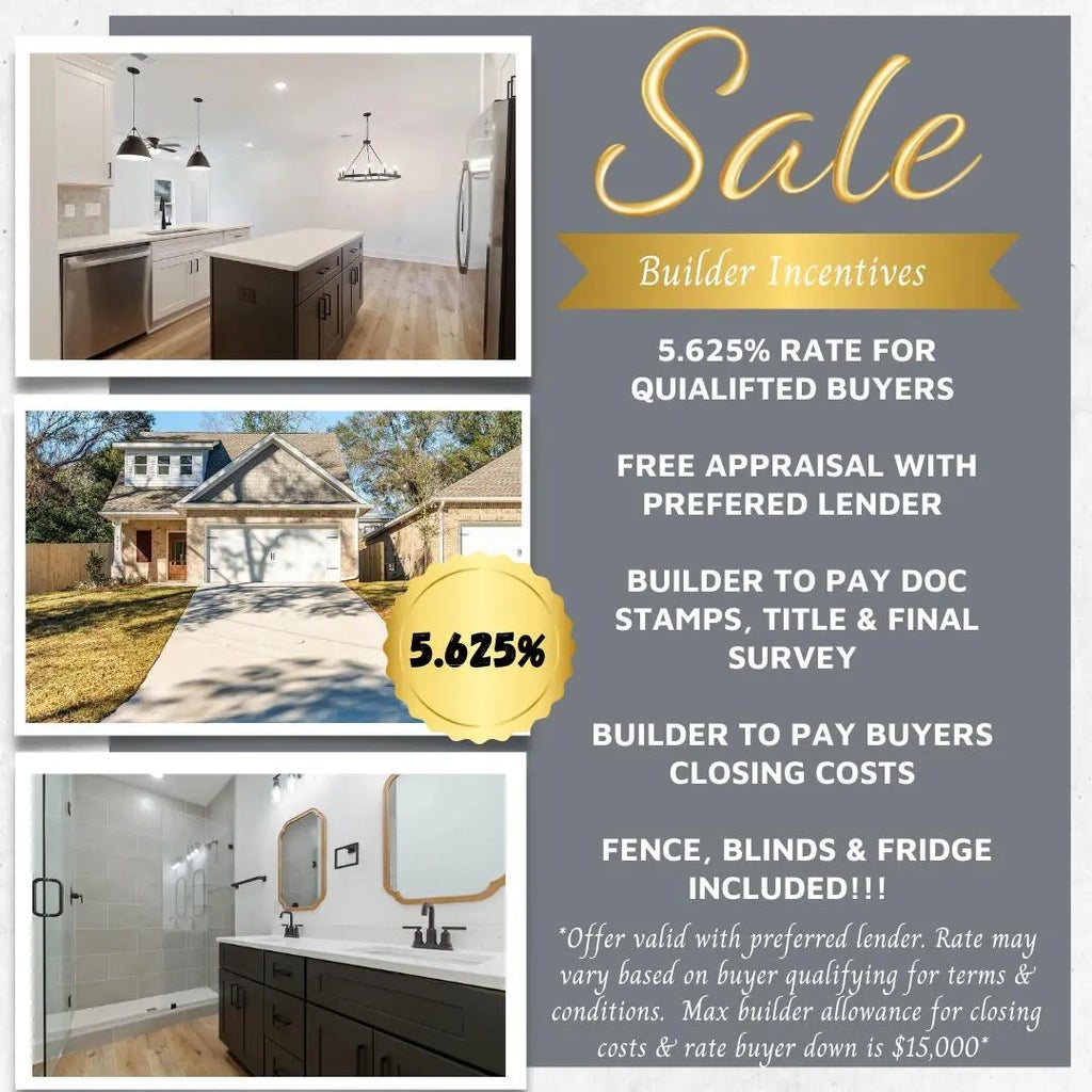 AMAZING BUILDER INCENTIVES. BUILDER OFFERING A 5.625% RATE FOR QUALIFIED BUYERS. PLUS BUILDER WILL PAY BUYERS CLOSING COSTS, DOC STAMPS, TITLE AND FINAL SURVEY. FENCE, BLINDS & FRIDGE INCLUDED!!! Call Preferred Lender for Incentive & Payment Details. This Beautiful new construction homes featuring 3 bedrooms and loft with 2.5 bathrooms, with the master suite conveniently located on the first floor. The open-concept layout includes a spacious kitchen with quartz countertops, double island, solid wood soft-close cabinets, and a full GE Stainless appliance package. Upstairs, you'll find two cozy bedrooms, a loft area and a full bathroom, offering plenty of versatility for a home office, playroom, or guest rooms. Enjoy outdoor living with a fenced-in backyard.The 2-car garage offers additional storage space. This home is close to top-rated schools, NorthWest Florida State College, Eglin Air Force Base, and just 15 miles from Destin's beaches and shopping. Move-in ready and waiting for you to make it your own!