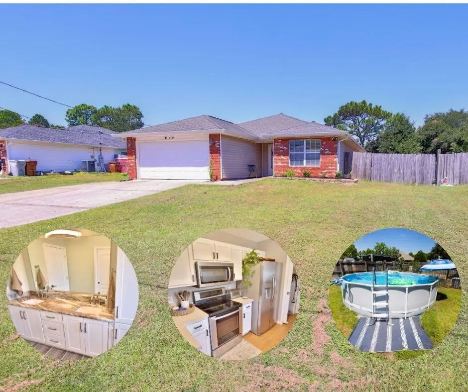 This well-maintained home offers comfort, convenience, and location--just minutes from shopping, dining, top-rated schools, and Navarre's sugar-white beaches.Inside, enjoy a spacious living room with room for a sectional, a large kitchen and dining area with a beautifully remodeled master bath with custom tile. Carpet runs through the living areas and bedrooms, with brushed nickel finishes and ceiling fans throughout.The fenced backyard features a covered patio, space for a fire pit, and a concrete pad for a boat or RV. This home has gutters to ensure proper rain run-off. The pool and play area will stay if you'd like. No HOA and a short distance to everything Navarre has to offer--schedule your showing today!