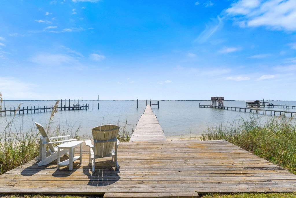 A Rare Waterfront Gem on the Emerald CoastWake up each morning to sparkling water views and soft white beach sand just steps from your back door. This stunning property offers a lifestyle of serenity and luxury--where dolphins glide past at sunset and boating adventures begin right from your private dock.Situated on nearly an acre, this home is a true rarity on the Emerald Coast. A sweeping 100-foot waterfront property line sets the stage for endless possibilities, whether you prefer relaxing with the sound of gentle waves, jetting out on your sea-doo, or cruising straight across the bay for waterfront dining at Navarre Beach.Inside, the thoughtful split floor plan provides both privacy and comfort. The mother-in-law suite is a standout feature, complete with its own kitchen, living room, laundry hookup, and private entranceperfect for extended family or guests. The main kitchen, truly the heart of the home, is designed to capture breathtaking water views from nearly every angle.