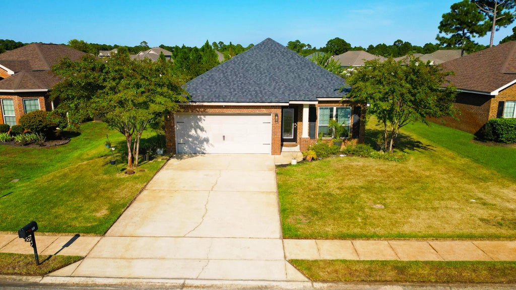 Welcome to Driftwood Estates, where charm meets convenience! This beautifully maintained 3BR/2BA home with an additional flex space offers one of the community's most desirable settings--overlooking a pond in the rear and facing another green space with water views in the front.Step inside to an open layout highlighted by graceful archways, crown molding, and tile floors throughout. The updated kitchen features quartz counters, a large island, coastal-inspired backsplash, and ample cabinetry, flowing seamlessly into the dining and living areas.The spacious primary suite boasts a tray ceiling and spa-like bath with dual quartz vanities, soaking tub, and walk-in tiled shower. Two guest bedrooms are generously sized, and the bonusroom offers flexibility as an office, media room, or formal dining. Enjoy tranquil Florida living from the enclosed back patio, fenced yard, and direct pond access for fishing or relaxing. With a two-car garage, new roof, laundry with storage, and manicured landscaping, this move-in ready home checks every box!