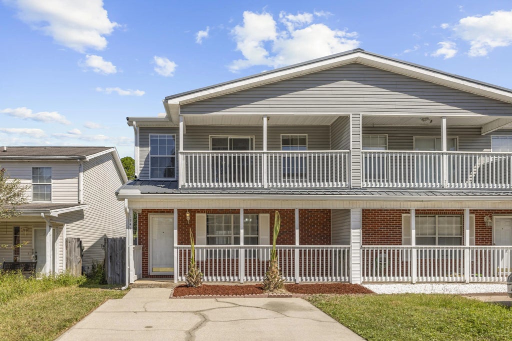NEWER METAL ROOF (2021) & WATER HEATER (2023)! Welcome to 1841 Pointed Leaf Lane, an impeccably maintained 3-bedroom, 2.5-bath townhome located in the heart of Fort Walton Beach, ideally situated between Eglin AFB and Hurlburt Field. This spacious home features luxury vinyl plank (LVP) flooring throughout, offering durability and modern appeal. The galley-style kitchen features granite countertops, a breakfast bar, ample cabinet space, and a pantry closet. A designated dining area flows seamlessly into the bright living space, enhanced by ample natural light and a comfortable, open layout. Downstairs also includes a convenient half-bath and a laundry closet. Upstairs, the primary suite includes a trey ceiling, ceiling fan, and a private balcony to enjoy the Florida breeze.The attached en-suite features a double vanity with granite countertops and a large walk-in closet. Outside, enjoy a covered front porch, open back patio, and a privacy-fenced backyard. With major updates already complete and a central location near bases, beaches, and amenities, this move-in-ready property is ready for your private showing today!