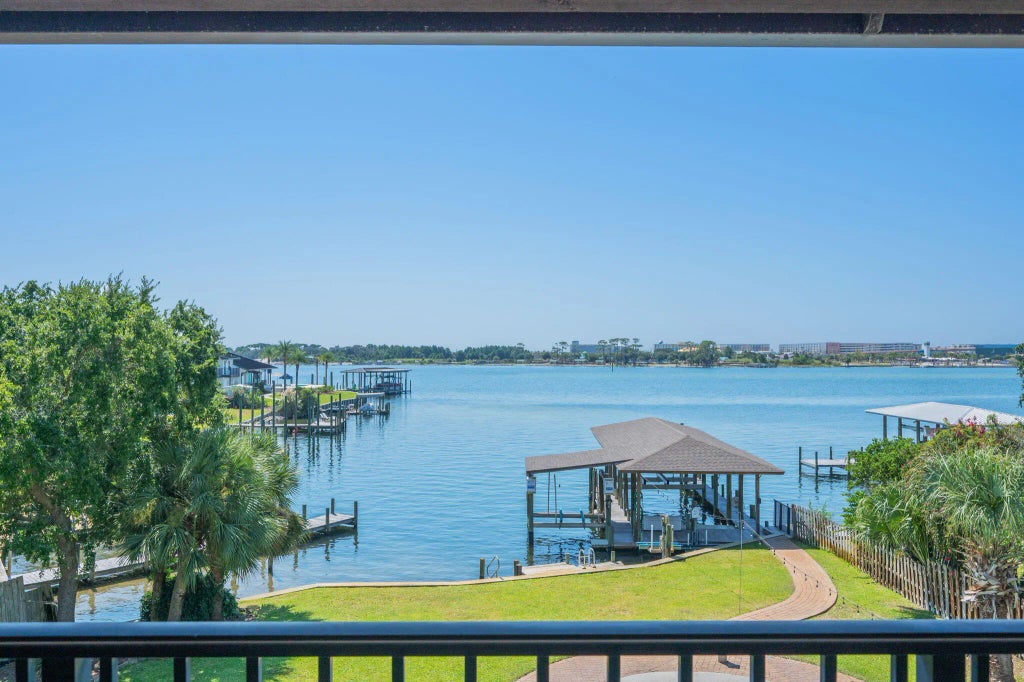 The main-level primary suite is a private sanctuary with breathtaking waterfront views. This expansive retreat features a spa-inspired bath with a large air jet tub, oversized steam shower, and exquisite finishes. His and her dual vanities and two extraordinary walk-in closets, each designed on a grand scale, provide unmatched space and relaxation leading to the large, oversized back porch.