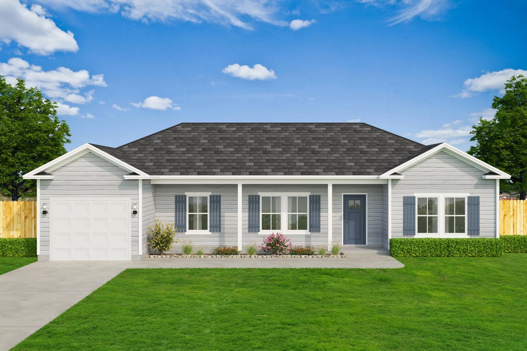 COZY COTTAGE HAS CAREFULLY DESIGNED FLOOR PLAN maximizing your living space. Covered front porch, finished garage and fully landscaped yard comes with yearly grass cutting (HOA includes 40 cuts per year). Split BR design, raised ceilings in open family/dining/kitchen area. Luxury vinyl plank flooring throughout, quartz countertops, work island w/bar seating, white shaker cabinets + pantry in kitchen. Primary bedroom has double walk-in closets, bath has double vanities + linen storage. Oversized mud room has room for washer/dryer + freezer or lockers/benches. Ceiling fans in all bedrooms & family room, recessed lighting throughout the home. Seller will pay up to $10,000 towards closing costs/prepaids/rate buydown (restrictions apply). Late November/early December completion.