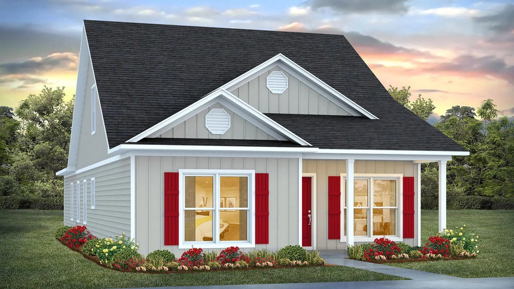 Welcome to 206 Huckleberry Street, located in Owls Head East in Freeport, Florida. This home is under construction and has four bedrooms and three full bathrooms. The Cary floorplan has a rear entry garage and a landscaped front flowerbed which creates a welcoming feeling and provides great curb appeal. The heart of this home is the kitchen that features a center island with granite countertops, white cabinetry, and an appliance package that includes a stove, microwave, and dishwasher. The first floor features the primary bedroom, complete with an ensuite bathroom that includes a stand-alone shower and a spacious walk-in closet. This space provides a private retreat for homeowners.A guest bedroom, which can also serve as a home office, is conveniently located off the front entry as well as a separate full bathroom for guests. EVP flooring creates a seamless transition in the open living area on the main, while carpet is in each bedroom and the upstairs hallway. The second floor offers a quiet retreat with two additional bedrooms and a full bathroom that has a shower and tub combination, a single vanity with granite countertops and lower cabinetry for storage. There is also a linen closet on the second level for storage. This home also features a rear-entry two-car garage, enhancing curb appeal and functionality. Outdoor living is a highlight, with a covered front porch perfect for relaxing and a covered side porch offering additional space for outdoor enjoyment.